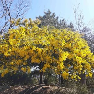 ミモザ💛 𓂃𓈒𓏸 ෆ⃛*❀୭ஜ❀.*ஜ❀𓈒𓂃 大好きなミモザの木💛 手柄山温室植物園の駐車場で見つけて👏🤗 側まで近づき見上げて何枚も撮しました✌ 枝からのアップも可愛いお花ですが… こんなにゆさゆさとお花が咲いてる醍醐味は…全体が一番でしょう…(笑)👍💖💕🥰 🏷️ビタミンカラー♪