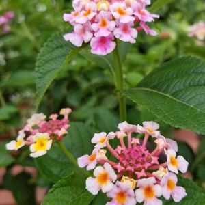 ランタナ🏵 ✾花言葉✾「心変わり、合意、協力、厳格」 結構ひろがってきたから切り戻ししたほうがいいかな。一株で放置していたけど元気だわ✨ 花が「心変わり」しながらも、懸命に小さきいのちが寄り添い「協力、合意」しながら咲き誇る様は「厳格」に生きる生き様そのものなのかも♬ 変化し続ける様は魅力的です♬ 和名の「七変化」はそのままだわ😆 でも、ペンタスもそうだけど、雨の後とか小さい花は可愛いけど結構掃除が大変💦