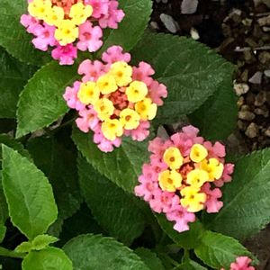 ランタナ "七変化" ひとつの花なのに色とりどりに変化💛🧡💗 リボン🎀みたいな蕾も可愛いよ(∩ˊᵕˋ∩)・*