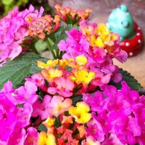 🏷️日曜ビタミンカラー 手のかからないランタナ❤️🧡💛 太陽の下では、可愛さ倍増‼️ 私もエネルギーもらえて、 リフレッシュ🎸 🏷ちっちゃいものクラブ