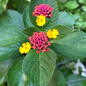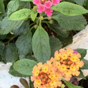 可愛いランタナ❤️💛💗 よく見ると、蕾は赤❤️ 開花すると黄色に咲いて💛 咲き進むとピンクに変化💖 和名、七変化の由来がわかりますね❣️