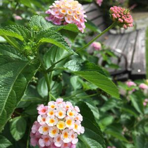 【No303 ランタナ】 暑くなってきて、ランタナが旺盛です。 鮮やかな花で、とっても可愛い💕ですが「世界の侵略的外来種」に含まれています。種は一株に一万以上つけるそうです。 管理をしっかりしないといけないですね。 とは言っても、花の色をコロコロ変える、楽しみもあり、花姿に心奪われます。別名の七変化は、色が咲き進むごとに変化するからですね。 花言葉「心変わり」は、花色が徐々に変化することから。 「堅実さ」「確かね計画」「厳格」は、花色を変えながら、晩秋まで長く咲き続けることから。 「合意」「協力」は、小さな花が集まって、何かを一緒に行っているように見えるから。 夏にも負けずに丈夫なお花です。