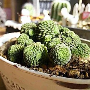 昨日の戦利品1 モナンテス-ポリフィラ こういった密集型の多肉植物は買ったことがありませんでしたがこのナウシカの腐海のような見た目と一斉に蕾を出している所に一目惚れし買っちゃいました🎵