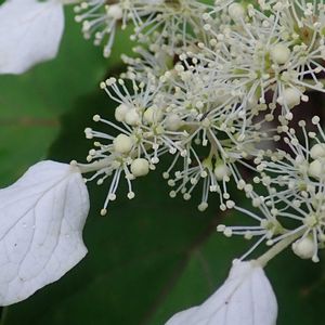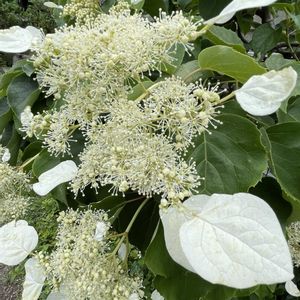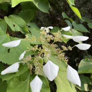 遠目から見ると蔓紫陽花と間違えそうになる。 白い萼片部分が花っぽいのと、葉形かで違いが分かる。 マタタビ、ミヤママタタビ、ハンゲショウ…などの様に『ここで花が咲いていますよ〜✨』と風に揺れ虫達にアピールしているのだそう。 派手色の花達とは違い、控えめな花の粋さ…? 色んなものと繋がっている感