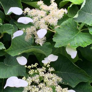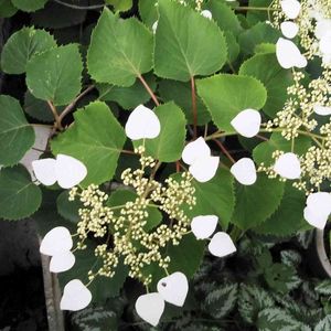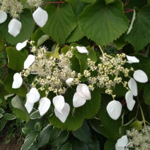 紫陽花 イワガラミ さいたまさん主催の 🏷2021紫陽花祭り白 に参加です。 イワガラミの投稿が今の所ありませんので。 花びら(装飾花)も葉も、ハートです。