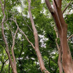 おはようございます✨ バラ園で出会った木とモフモフ ⒈島百日紅 ツヤツヤ ⒉島百日紅 こちらは大きい ⒊メタセコイヤ イワガラミを纏って ⒋桂の木 安定の美しさ ⒌スモークツリー モフモフ 🏷️木曜日は木 🏷️木曜モフモフ 参加させてください 日曜日のバラ園にて🤳 では 今日も一日頑張りまっす😊