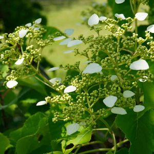 「イワガラミ」 (岩絡み) 長居植物園 アジサイコーナー 装飾花は意外に少ない