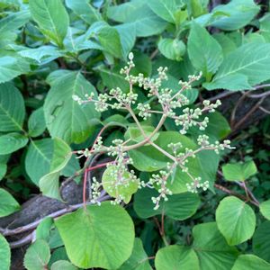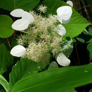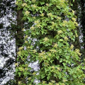 今日の花🌼 ラクウショウに絡み付いたアジサイ科イワガラミ🌼