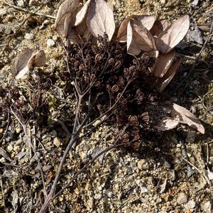 寒い風の中 久しぶりの山のお散歩 足元に見慣れない花殻が これは? 上を見たり下を見たり ①②イワガラミのドライフラワー ③ヤシャブシの大きな木を這い上るイワガラミの蔓 高ーい空で風に ゆらゆらひらひら ④大岩を覆うイワガラミ 1枚の白い装飾花が涼しげで 2023..6.22 撮影