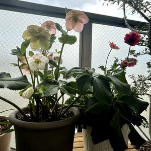 クリスマスローズ『ロゼルミエール』とアネモネパブニナが仲良く咲いています♪ 去年お迎えして、 初めて、 アネモネパブニナ咲きました。 日に日に、ぐんぐんと伸びていくので、驚きです。 嬉しいなぁ。