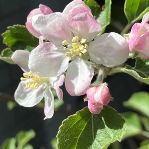 今日のお花 林檎 2年前ですが 4月の写真です 2枚目はその5ヶ月後9月の写真 姫林檎かな