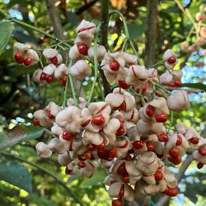今日のお花 真弓 昔この木で弓を作られていたとか 和名の由来だそうです ちょうど1年前の写真です 今年は残念ながらまだ見ることができていません