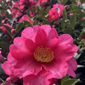 おはようございます 今日のお花 山茶花 賑やかにたくさん咲きます 落ちた花弁が絨毯の様 去年の12月の写真 ご近所にて