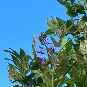 今日もお疲れ様でした☺️ 見上げると藤の花が咲いていました こんな真夏に咲くこともあるんですね 夏に咲いた枝先は 翌年見事な花を咲かせるそうです 来年が楽しみです 明日良い事があります様に♪