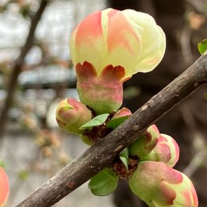 今朝の様子 開くばかりの木瓜の花の蕾 ハート型のガクも可愛いですね 寒い朝でした 風邪などひかれぬ様に 今日もお元気で♪