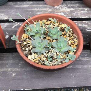 🌵多肉植物🌵 子持ち蓮華 オロスタキス属 原産地が日本なんて愛おしいです\(^o^)/ 数年ほとんど放置していますが今年も元気に成長してきています(*^_^*) 雑草も一緒に成長😅 近々雑草を削除してあげないと(笑) 暑いのが苦手な子持ちさんは真夏になったら日除けをしないと干からびちゃう(ToT) 寒さには案外強いのですが雪の下にならないようにしてあげないと😨 悲しいことにお花を咲かせるとその株は死んでしまうので覚悟してお花を見るしか無いわ(*^_^*) 増やすのもランナーを切って新しい土の上に置けば案外簡単に増やすことは出来ますが我が家はあまり増やしません(^^) ただほんの少しだけ保険と言うか全滅しない程度にしておきます(*^^*)