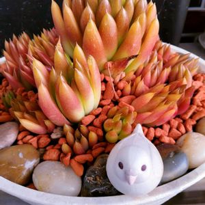 🏷インコの日 ① 🏝️で手直しに使用した 赤みのオロスタキス昭和さん 群生の残りを植替えました✨️ ② 2個買いで安売りしていたので オロスタキスと一緒に購入した エケベリア白鳳さんも植替え✨️