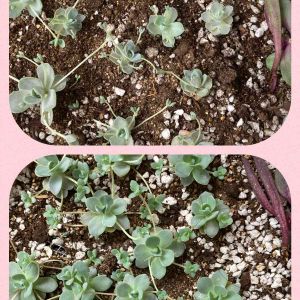 2ヶ月ほど前にお迎えした時は ちょっと乱れた感じで残念だった 子持ち蓮華🫠 やっと葉にツヤが出て ランナーも元気に伸びてきた