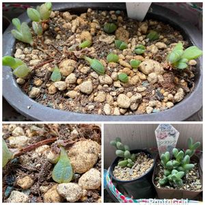 佐倉市と言えば二和園、て事で、愛車(スクーター)で行ってまいりました。 本日のお持ち帰りは小さな多肉、4種。 右奥から時計回りに クラッスラ 青鎖竜 ルスキア インデュラータ 名前不明 with 碧魚連 クラッスラ パステル(小米星 錦) 二和園さんは普通は名札が付いていないのですが、今日はたまたま、欲しいと思ってた子達に名札が付いていたので無事にお迎えができました。 が。 1つだけ、ルスキアインデュラータみたいに小さくて、碧魚連みたいに窓がある子がいまして。会計をしてくださったおとうさんも名前がわからないみたい。 どなたか、ご存じの方、いらっしゃいませんか?