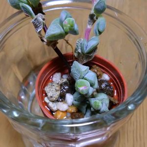 急に欲しくなって フリマでぽちり 凍結防止に水を切ってあったので シワシワ〜 で届いたよ 取り急ぎ底面給水で回復中〜 がんばって!!