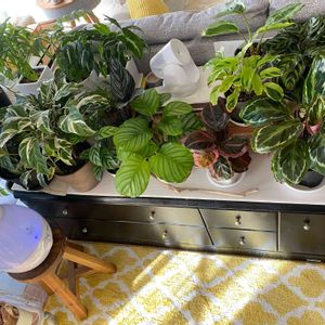 おはようございます😊 カラテアが増えて小さな加湿器では物足りないので、大きめの加湿器を設置😊 ちょっと過保護かな😊