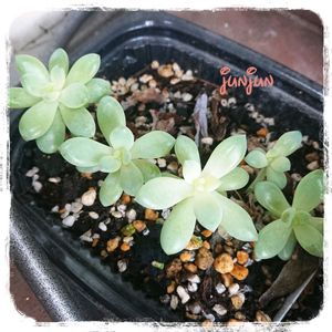 また今夜から雨かいヽ(`Д´)ノ しかも水曜まで 結構な本降り予報( - - `) 明日は最高気温も 1桁台だし 春はドコ行ったの?( '-' )三( '-' )? ベランダ多肉達は 暫く室内避難です ⟡.·*.·······Today’s post·······⟡.·*. 大好きなミスジン ちょっぴりお焦げだけど この色合い好き🩵🩷 多肉屋つむぎさんの フェアリークイーン 成長が楽しみな子(❁´ω`❁) 錦玉園さん苗 デミヌタ×リラシナ💜 デミヌタ感満載だけど 成長したらリラシナ要素 出て来るのかしら¿( ˙꒳˙ )?