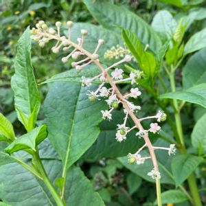 6月に見た時もこれ位の成長でしたが 一度切られてしまい、また復活してました 8/13のpicです 🔍によると ヨウシュヤマゴボウは全草有毒なことが知られています。 葉・茎にはアルカロイドやサポニン、根には硝酸カリが含まれていて、食べると中毒を起こします