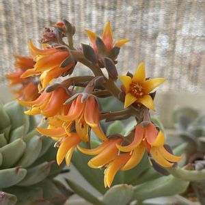 パルマ ソラのお花が長く咲いています🧡 お花が咲き、葉は外側がダメになり かかっていましたが中から新しい葉が展開してきましたε-(´∀`*)ホッ オウンスローも形が崩れて来た😅 そろそろ✄かなぁ
