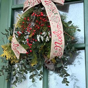 もうクリスマスイヴ 🎄✨💕 今日までリースもスワッグも作る気分になれなくて。 それでも気分を盛り上げようと 庭のプンゲンス&ヒバをカット✂️ 友人から南天を貰ってチャチャッと✿“ヽ(´︶`*)ノ”✿ 大きなリボンで整えて 何とか格好ついたって感じ🎶🎶🎶 それにしても、プンゲンスのチクチク痛すぎ〜(;´༎ຶД༎ຶ`)
