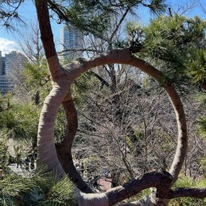 「マツ」 菰巻き(こもまき)されていました 周りは芝焼きが済み、奥には岡山城も見えています 岡山県 2月15日撮影