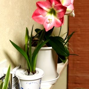 ついにアマリリス花開きました! 結構な大輪です。 花粉の入ったやくを取ると花が長持ちするそうです😊
