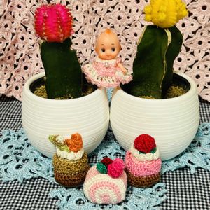 🌵ヒボタン🩷💛 水をほとんどあげない方が長持ち😆 🧶キューピーさん、帽子もあるけど 被せるとヘルメット⛑️みたいで 💦💦💦 オヤツタイムです
