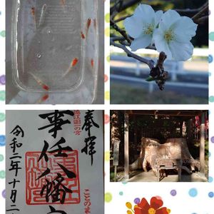 桜…?☆ GSお友達のお家に寄りながら近場ドライブ🚘お花屋さん、野菜売り場を巡りながら多肉屋さんだけどメダカ屋さんで一匹100円メダカを買ってきました✨ その後、事任幡宮へ🚘 桜?🙄がさいていました✨