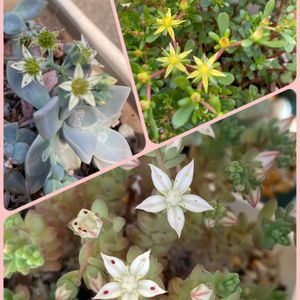 成長記録(๑˃̵ᴗ˂̵)🌼 左、前回。右、現在。 駐車場の脇にちょっとだけ生えてたセダムちゃん、今はこんなにこんもり増え、 葉挿しのベビーは随分色は変わってるけど大きくなってる〜💕