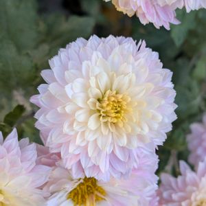 マム(菊)連投させてくだい。3/5 三投目「ポンポン・マム」 品種まではわかりませんがダリヤの様なポンポン咲きでした🤍(*˘︶˘*).。.:*♡