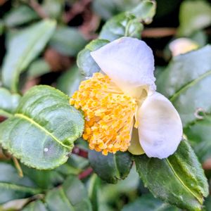 投稿忘れでした〜 花が咲かなければスルーしてしまう垣根に花が…雄蕊が目立つ「チャノキ」 ⏬️ ツバキ科ツバキ属の常緑低木 原産地>東アジア(日本も含む、中国南西部からインド、ミャンマー、ベトナムも候補) 開花時期>10〜12月 言わずと知れた茶葉の原料に成りますね🍵 大きく区分けすると①中国種/②アッサム種になるそうです。 花言葉は「純愛」「追憶」「向上心」「謙遜」「完全な美しさ」などと良い言葉が並びます🍵
