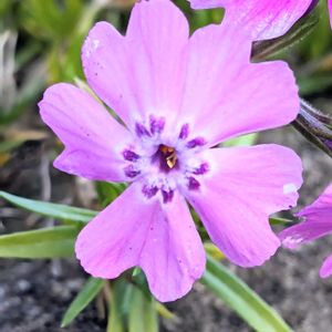 花びらがハート型の芝桜。 近くに定着した日当たりの良い場所では、芝桜の花🩷がポツリ✕2咲いてます。