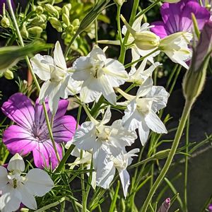 🔰「アグロステンマ」「ムギナデシコ(麦撫子)」 ナデシコ科ムギセンノウ属 原産国>地中海沿岸、西アジア 別名>ムギセンノウ ※ワイプ画像にある白い花が、端っこにちらほらと混ってたので一緒にしちゃいました💜🤍💜(ӦvӦ。)