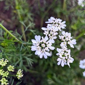 「今朝は、良く会いますね」 「あなたのお名前は?」 ⏬ オルレア・ホワイトレース 🌿パセリ状で小さい花の集合体 ⏬ セリ科の多年草 原産地はヨーロッパ