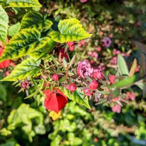 日本式に「あか提灯🏮」😎 ⏬ ちゃんとします!(笑) 和名>「ウキツリボク(浮釣木)」 アオイ科、イチビ属 原産地>🇧🇷ブラジル …ウィキペディアより