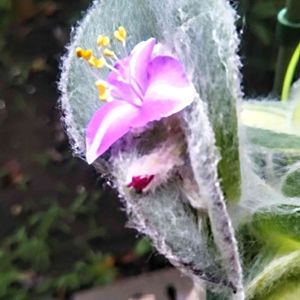 トラカン開花 トラディスカンティア・シラモンタナ 名前は6月の投稿の際教えてもらいました 購入履歴 昨年9月 鹿島灘海浜公園 前回投稿6/16 9月 1月 3月 6月 7月 🌱→🌾→🌱→🌿←🌺←new どんな花が咲くのかと~ ピンク地に白ラインの入った 2㌢ほどの可愛らしい花でした 木曜モフモフ ピンクワールドへようこそ