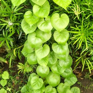 昨日のお花 アサガオ 💂氏「まだ花が咲いてねンだわ」 元気な月曜日!らしくハート型の葉っぱが垣根を越えて元気よく伸びていました 元気な月曜日‼️