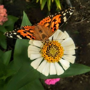 ジニア 6月の開花以来咲き続けてます 百日草の名のとおり100日間楽しめそうです 🦋ヒメアカタテハ