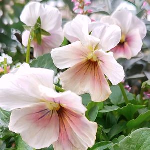 新たに出会った宮崎ビオラ 柔らかで仄かな桃色のビオラ ブラウンやパープルを帯びたラインも美しく ウサギの耳の内側を思い浮かべました🐰