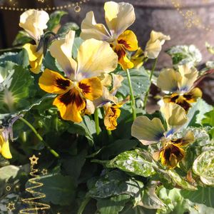 我が家の激マブ✨レディ様 縁がキラめいて見えるのは光の加減かと思っていましたが、接写してみるとホントに縁がキラキラ色だった🩵 他にも個性的なビオラ達が寒い中元気です😆 先週日曜🤧インフル発症🤒…やっと通常モードに戻りました💦 あ〜クリスマスに年末…焦るぅ😓
