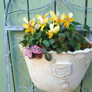 もうボロボロなアイアンのスタンドだけどお気に入りだからどうにか工夫して使い続けてます。勿体ない病ってやつでしょうか🤭 エボルベを使って寄せ植えました😊 1株で大きくなりそうなのでビオラは1つだけ。エボルベは今年も可愛い❀