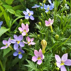 イソトマ(ローレンティア) 雨に濡れていましたが 昨日より沢山花が開いています。 寄せ植え鉢のお供の花はまだ少ししか開いていません💦 「アレ、わたしだけ?」って周りを見回してるみたい😅 今年はまさかもう梅雨入りとは思わず咲き始めたのかも〜💦 なんとか、アメニモマケズ、がんばってね🙏 ✳︎✳︎✳︎✳︎✳︎✳︎✳︎✳︎✳︎✳︎✳︎✳︎✳︎✳︎✳︎✳︎✳︎✳︎✳︎ 《イソトマ》 その他の名前:ローレンティア・ラウレンティア 科名:キキョウ科 属名:イソトマ属(ローレンティア属) 水やり: 鉢土がよく乾いたらたっぷりと水やりします。用土の過湿を嫌うので、「水のやりすぎには注意」します。(⬅️👀😱‼️) ✳︎✳︎✳︎✳︎みんなの趣味の園芸より✳︎✳︎✳︎✳︎ (えっ!アメニモマケズと放置せず、雨のかからない軒下に入れてあげた方が良いかしら〜😅💦) 🏷星屑ファンタジー