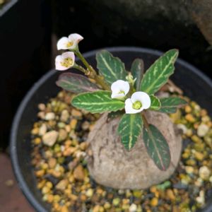 ユーフォルビア スパンリンギー (フィッシュボーン) お花咲きました。 名前由来の葉っぱの白い模様も、もう少しはっきりでてくると良いな〜