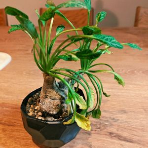ユーフォルビア スパンリンギー (フィッシュボーン) 実生の小さい子を先日お迎えしました! 早速お気に入りの鉢へ。 先輩スパンリンギーみたいに大きく育ってほしいですね😄