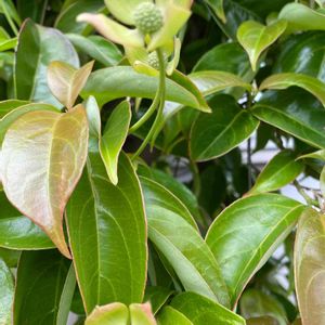 おはようございます☺ 1つ前のピックで[名前をおしえて]したこの娘。 やはり、ヤマボウシのようです。 きたていさん、じぃじさん、piroさん、他の皆様、 ありがとうございました(*ˊᗜˋ*)/ᵗᑋᵃᐢᵏ ᵞᵒᵘ*♪ そこで、調べてみた所、 常緑のヤマボウシもあるようで、 花(総包片)が白ではなく緑色をしたものは[月光] という品種ではないかと。。。 葉っぱも、常緑ヤマボウシならば、葉色が明るくて黄緑から 赤味までがやや入り混じっている事が多いそうです。 総包片が、普通のヤマボウシのように互いに重なる部分がなく、 離れて付いているのも特徴であると書いてありました。 なので、それらを総合しまして、 [常緑ヤマボウシ]別名[ホンコンエンシス]に 決定しだいと思います。 ありがとうございましたぁ〜🎵(:D)┓ペコ